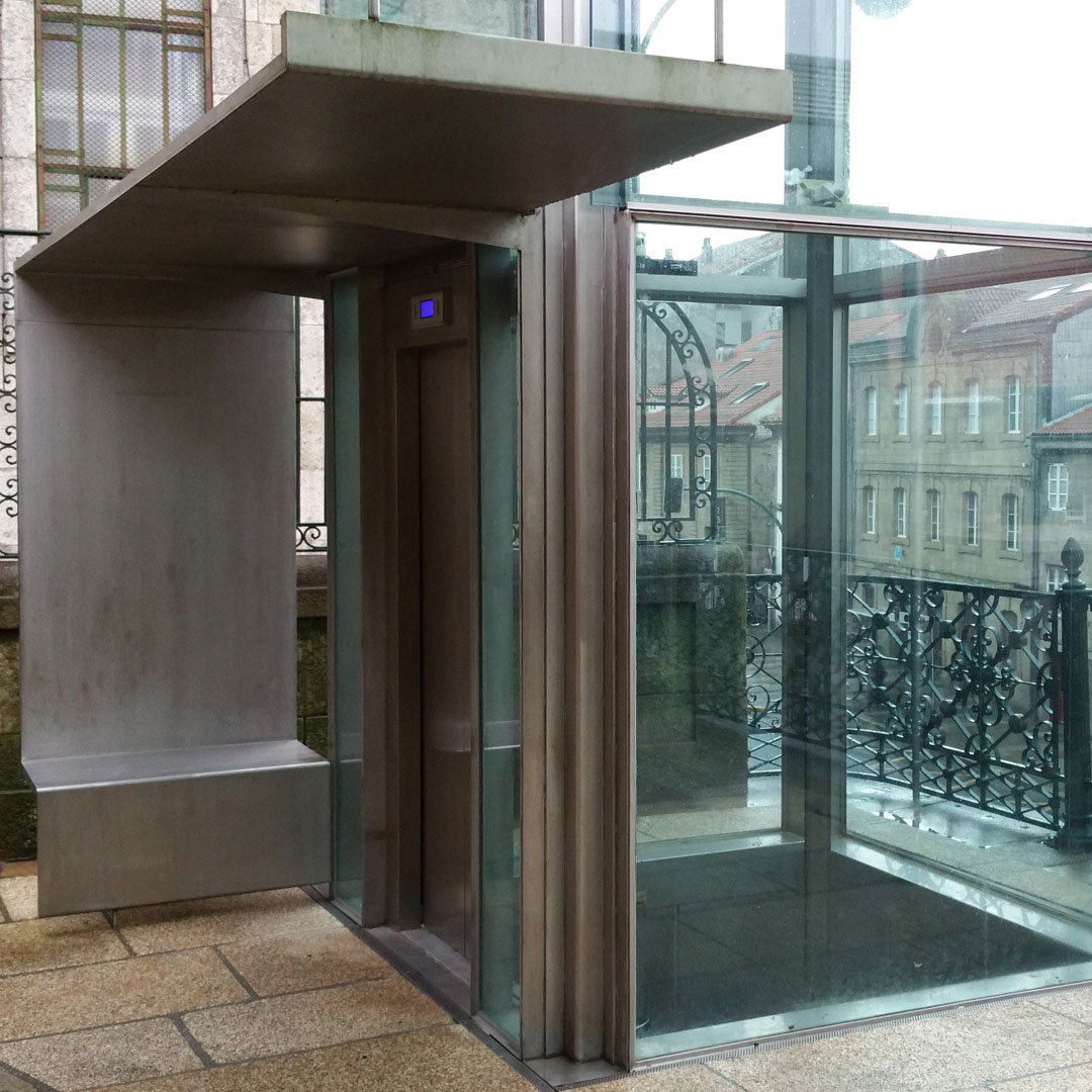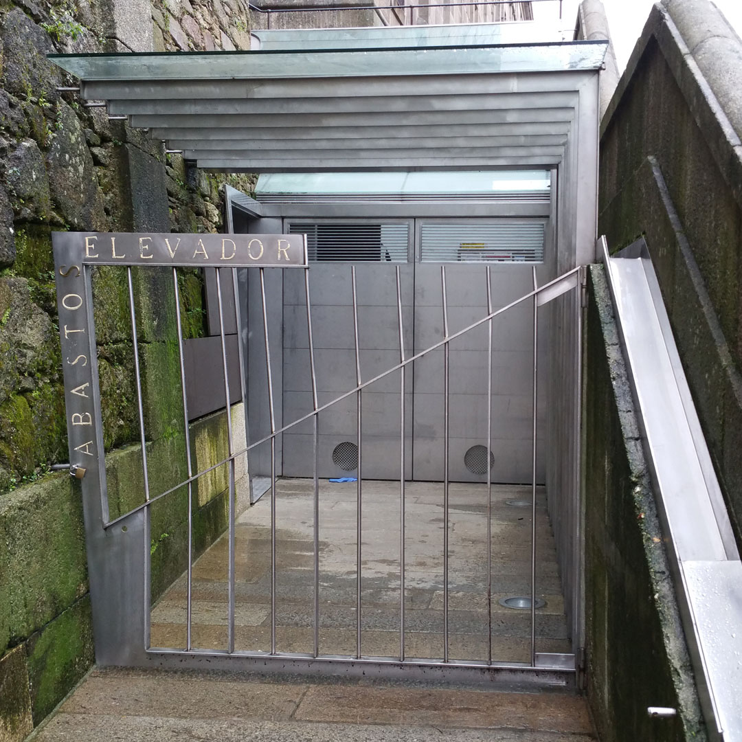 El ascensor permitirá superar el desnivel existente entre la rúa Virxe da Cerca y la plaza y se encuentra situado en uno de los tramos de la escalinata, que fue eliminado; por lo que ahora solo queda uno de los tramos de escaleras. Esta ubicación, además de ser una de las pocas opciones disponibles, también fue bien acogida ya que está prácticamente junto a la parada del transporte urbano. Los usuarios del elevador accederán directamente a las casillas de la zona del murallón más cercana a la iglesia de San Agustín. Este aparato solo funcionará durante el horario de apertura del recinto comercial, ya que la zona queda cerrada fuera de este período de tiempo. El horario es de 8 a 15 horas de lunes a sábado.