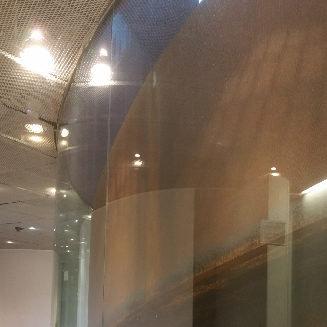 Una serie de salas cilíndricas alberga las áreas de exposición que culminan en el espacio principal del museo que distingue los espacios utilizados en las exposiciones.